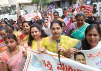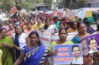 Congress Women workers protesting against BJP Union Minister Ananth Kumar Hegde for his irresponsible statement on women and religion, in Bengaluru on Tuesday 29th January 2019