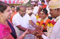 | Event Details: | CM HD Kumarswamy with wife and MLA Anitha Kumarswamy, Sudha Murthy, Suttur Mutt Seer Sri Shivarathri Deshikendra Swamiji and others blessing the newlywed brides and bride grooms at the mass marriage ceremony at the Suttur Jatra Mahotsava at Suttur, Mysuru District on Saturday 2nd February 2019 |