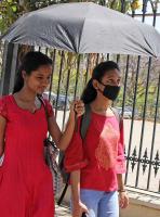 | Event Details: | College students using scarfs and umbrellas to protect from the scorching heat of the sun, as the temperatures have been souring high in the city, in Bengaluru on Thursday 7th March 2019 |