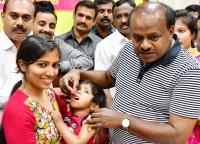 CM HD Kumarswamy administering the pulse polio drops as part of the National Pulse Polio immunisation program, in Bengaluru on Sunday 10th March 2019