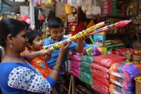 People seen buying colors and Holi festival materials for the upcoming Holi festival at Malleswaram, in Bengaluru on Monday 18th March 2019