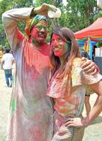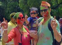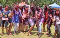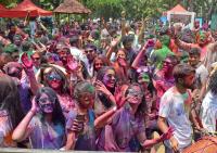 People playing with colours on the occasion of Holi festival at Ashoka Hotel, in Bengaluru on Thursday 21st March 2019