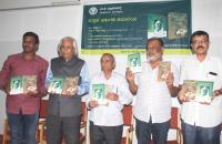 Scientist Dr Thuppil Venkatesh releasing "Hasiru Hachchi Chuchchi" and "Prana Ulisida Punyakoti" books with Dr KC Shivareddy and Book Translators at Chitrakala Parishat, in Bengaluru on Sunday 24th March 2019