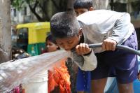 Boy Drinking Water due to Increasing Heat