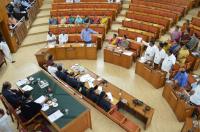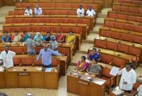 BBMP Opposition leader Padmanabha Reddy arguing with ruling party councilors during BBMP council Session at BBMP, in Bengaluru on Saturday 30th March 2019