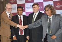 | Event Details: | Sandesh R Cadabam, Director of Cadabams Group seen with John Lawlor, Chief Executive NTW, Dr Dominic Mc Allister, British Deputy High Commissioner of Bangalore and Dr BR Madhukar, Medical Director of Cadabams Group seen during the press conference of Cadabam Group collaboration with Northumberland of UK, Tyne and Wear NDS Foundation Trust (NTW) to fight mental health disease burden in India, the press conference was held in a private hotel, in Bengaluru on Monday 1st April 2019 |