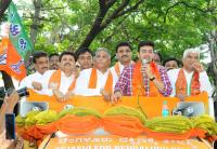 BJP Bangalore South Lok Sabha Candidate Tejasvi Surya with BJP state leaders campaigning for Lok Sabha Elections, in Bengaluru on Sunday 7th April 2019