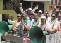 MLA Akhanda Srinivas Murthy with Congress leaders campaigning for Congress Bengaluru North Lok Sabha candidate Krishna Byre Gowda at Pulakeshinagar, in Bengaluru on Saturday 13th April 2019