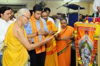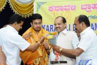 BJP Bengaluru South Lok Sabha candidate Tejasvi Surya being felicitated by Karavali Brahamanara Forum during his Lok Sabha election campaign, in Bengaluru on Monday 15th April 2019