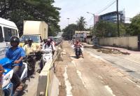 Vehicles moving slow due to white topping at Hosur road, in Bengaluru on Sunday 28th April 2019