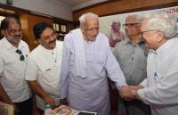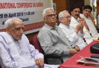 | Event Details: | Freedom Fighter HS Doreswamy with Ramchandra Rahi, Chairman, Wooday P Krishna, President, Karnataka Gandhi Samaraka Nidhi and Kumar Prashant, Chairman, Peace Foundation, New Delhi during a preparatory meeting on International Conference on Gandhi at Gandhi Bhavan, in Bengaluru on Monday 29th April 2019 |