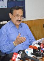 Chief Electoral officer of Karnataka Sanjeev Kumar addressing press conference at Election Commission office, in Bengaluru on Friday 3rd May 2019