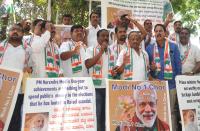 Congress workers staged a protest against PM Narendra Modi, for his remarks on Former PM Rajeev Gandhi, the protest was held at Gandhi Statue, in Bengaluru on Monday 6th May 2019