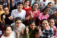 ICSE students of St Anns High School, Rajajinagar, celebrating after the ICSE results were announced today, in Bengaluru on Tuesday 7th May 2019
