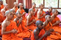 Buddhist monks performing prayers on the occasion of Bodhi Saptha Enlightenment Week at Maha Bodhi Society, in Bengaluru on Sunday 12th May 2019