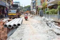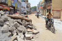 White topping road work at Cottonpet has been delayed and causing problems to the residents and the motorists at Cottonpet, in Bengaluru on Saturday 25th May 2019