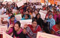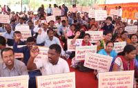 Members of Boarding School Employees Association staged a protest to fulfill their various demands at Freedom Park, in Bengaluru on Monday 27th May 2019