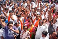 Kaveripura ward BJP candidate Pallavi Channappa seen celebrating with the supporters after the BBMP Council By Election results were announced, in Bengaluru on Friday 31st May 2019