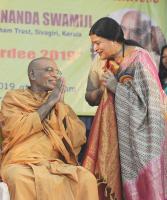 Women and Child Development Minister Dr Jayamala interacting with Padma Shri Visudhananda Swamiji during his felicitation program organised by Sree Narayana Guru organisations, in Bengaluru on Sunday 2nd June 2019