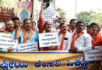 | Event Details: | Members of Rashtriya Kesari Okkuta let by Pramod Muthalik staged a protest and demanding justice for the death of Shivakumar Uppar, the protest was held at SBM Circle, in Bengaluru on Tuesday 4th June 2019 |