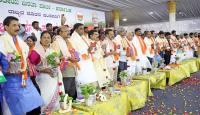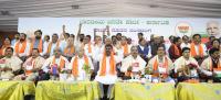 Newly elected BJP MPs being felicitated by BJP State President BS Yeddyurappa and BJP State Leaders at Palace Grounds, in Bengaluru on Wednesday 5th June 2019