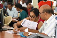 CET students and their parents at CET document vitrification at CET cell, Malleshwaram, in Bengaluru on Thursday 6th June 2019