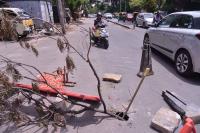 Hosakere Halli main road has caved in and has been causing problems to motorists, in Bengaluru on Tuesday 18th June 2019