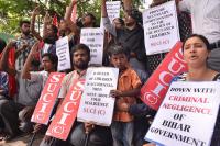 Members SUCI protesting against Government of Bihar for the deaths of children in Bihar due to encephalitis, the protest was held at SBM Circle, in Bengaluru on Monday 24th June 2019