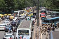 Heavy traffic jam reported at Seshadri Road due to various potest rallies, in Bengaluru on Monday 24th June 2019