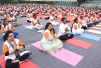 | Event Details: | MLA Sowmya Reddy, Charkravarty Sulibel, Tejaswini Ananth Kumar, Councilor Nagaraj and Yoga enthusiasts performing Yoga during "Yoga Hive" to mark International Yoga Day at Kittur Rani Chennamma Grounds, Jayanagar, in Bengaluru on Wednesday 26th June 2019 |