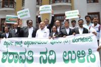 Members of Western Ghat Environment Forum protesting against Sharavati water project at Town Hall, in Bengaluru on Wednesday 3rd July 2019