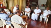 | Event Details: | Congress leader and Minister DK Shivakumar with JDS leaders and Ministers HD Revanna, DC Thammanna and JDS State President HK Kumarswamy meeting with JDS Supremo HD Devegowda at his residence, following the resignations of Congress and JDS MLAs, in Bengaluru on Sunday 7th July 2019 |