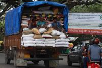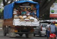 Workers sitting comfortably on a truck carrying large amounts of food material at Cantonment Railway Station Road, in Bengaluru on Saturday 20th July 2019