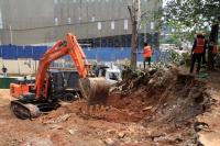 Trees being chopped to give way to widening of a road next to Okalipuram Signal, in Bengaluru on Sunday 28th July 2019