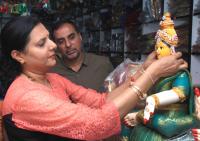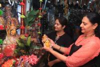 Women shopping the Lakshmi idols at Malleshwaram for the Varamahalakshmi festival, in Bengaluru on Tuesday 6th August 2019