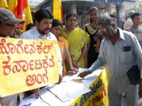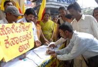 Members of Kannada Anushtana Mandali signing during the signing camapign on Save Hoganekal at KG Road