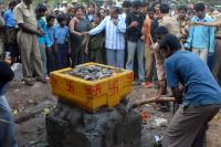 Idols being removed which were constructed illegally in a school