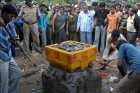 Government Pre University College Students under police protection removing the Om Shakti idol which was constructed illegally