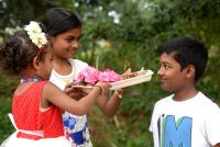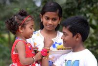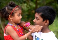 Sisters tying Raksha Bandhan rakhee to his brother on the occasion of Raksha Bandan, in Bengaluru on Thursday 15th August 2019