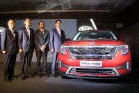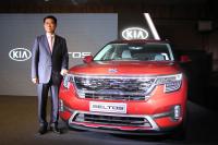 KIA Motors India CEO and Managing Director, Shim Kook Hyun, poses with the "Seltos" SUV during the car launch at Hotel Lalit Ashok, in Bengaluru on Friday 23rd August 2019