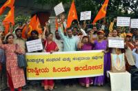 Members of Rashtriya Hindu Andolan staged a protest to fulfill their various demands at Gandhi Statue, Anand Rao Circle, in Bengaluru on Sunday 25th August 2019