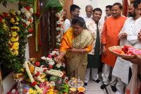 Women and Child Welfare Minister Shashikala Jolle performing pooja at her office at Vidhana Soudha, in Bengaluru on Wednesday 28th August 2019