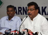 Karnataka Congress Leaders MB Patil and Satish Jarkiholi addressing a press conference at KPCC, in Bengaluru on Thursday 12th September 2019