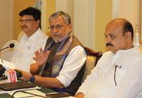 Deputy CM of Bihar, Sushil Kumar Modi, addressing a press conference on GST at a hotel, in Bengaluru on Saturday 14th September 2019