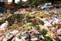 Festival garbage piled up at KR Market, in Bengaluru on Tuesday 8th October 2019