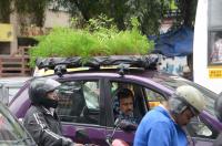 Advocate Suresh has put saplings and plants on his car to create awareness on save nature and avoid air pollution, in Bengaluru on Tuesday 22nd October 2019