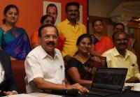 Union Minister DV Sadananda Gowda launching the NAUKRIFORU.COM website during the press conference on “Initiative of Empowering Youth to Employability by Skill” at Capitol Hotel, in Bengaluru on Saturday 2nd November 2019