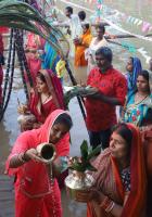 Devotees offering prayers to the Sun God on the occasion of Chhath Puja at Hebbal Lake, in Bengaluru on Saturday 2nd November 2019