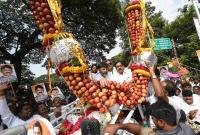 Former Minister and Congress MLA D K Shivakumar being welcomed by his supporters and Congress leaders, in Mysuru on Thursday 7th November 2019