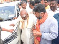DK Shivakumar with HD Devegowda at Chamundeshwari Temple